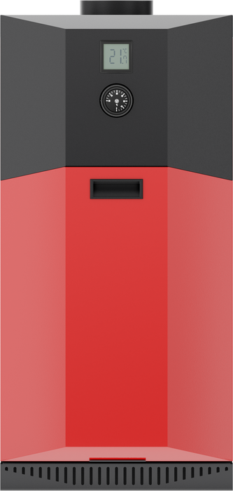 - Регулятор температуры со шкалой для удобства вынесен на переднюю панель котла
