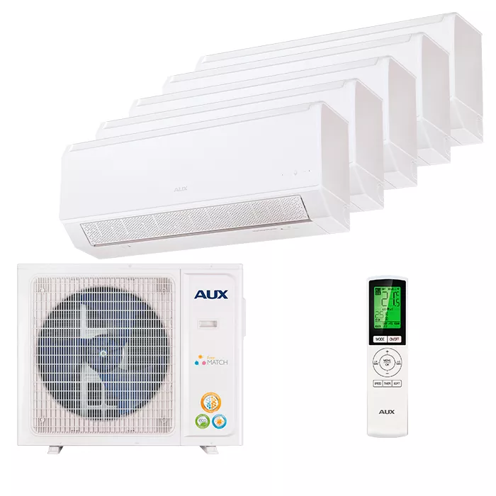 Мульти сплит система AUX на 5 комнат (25+25+25+25+25 кв.м.) Comfort - сочетание комфорта и стильного дизайна. Внутренние блоки исполнены в матово белом цвете, что исключает выцветание от УФ лучей. Встроенный модуль WIFI в каждом внутреннем блоке дает возможность управления системой, через приложение, из любой точки мира, главное чтобы был интернет.