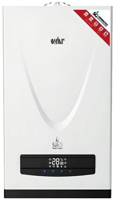 - Полная автоматизация работы: автоматический розжиг, регулировка мощности, поддержание заданной температуры отопления и горячей воды, постоянный контроль за безопасным горением, дымоудалением и всеми функциями котла.